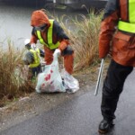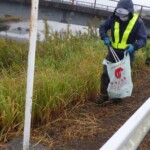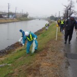 地域の方々に建設業への理解を深めていただくため、地域社会貢献活動として前川の土手や周辺道路のゴミ拾いを行いました。