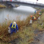 今回は市原市青柳の潮見通りにかかる青柳橋から下流(船溜まり)と上流(島穴橋)の区間約1.5㎞を2グループに分かれて行いました。