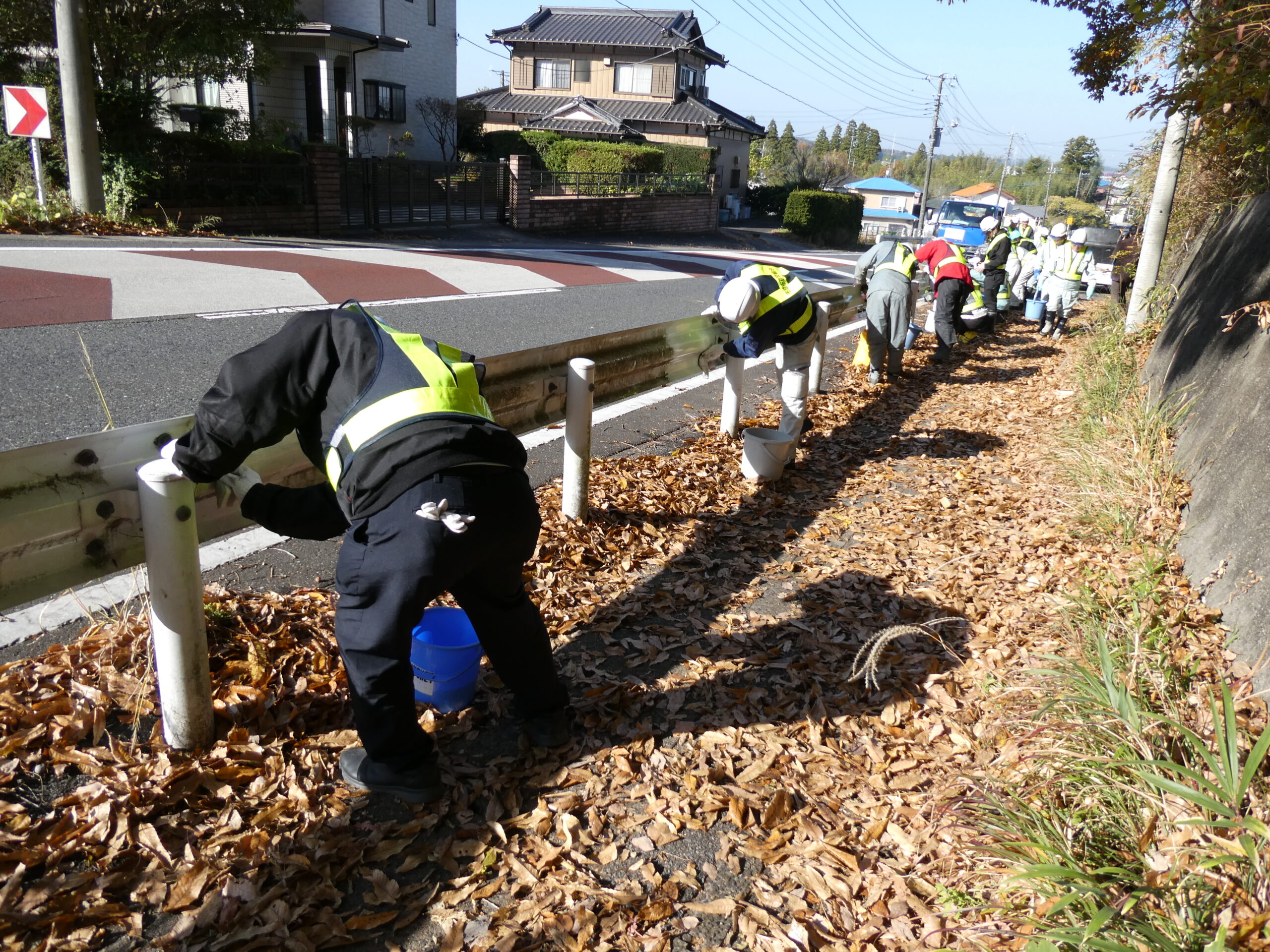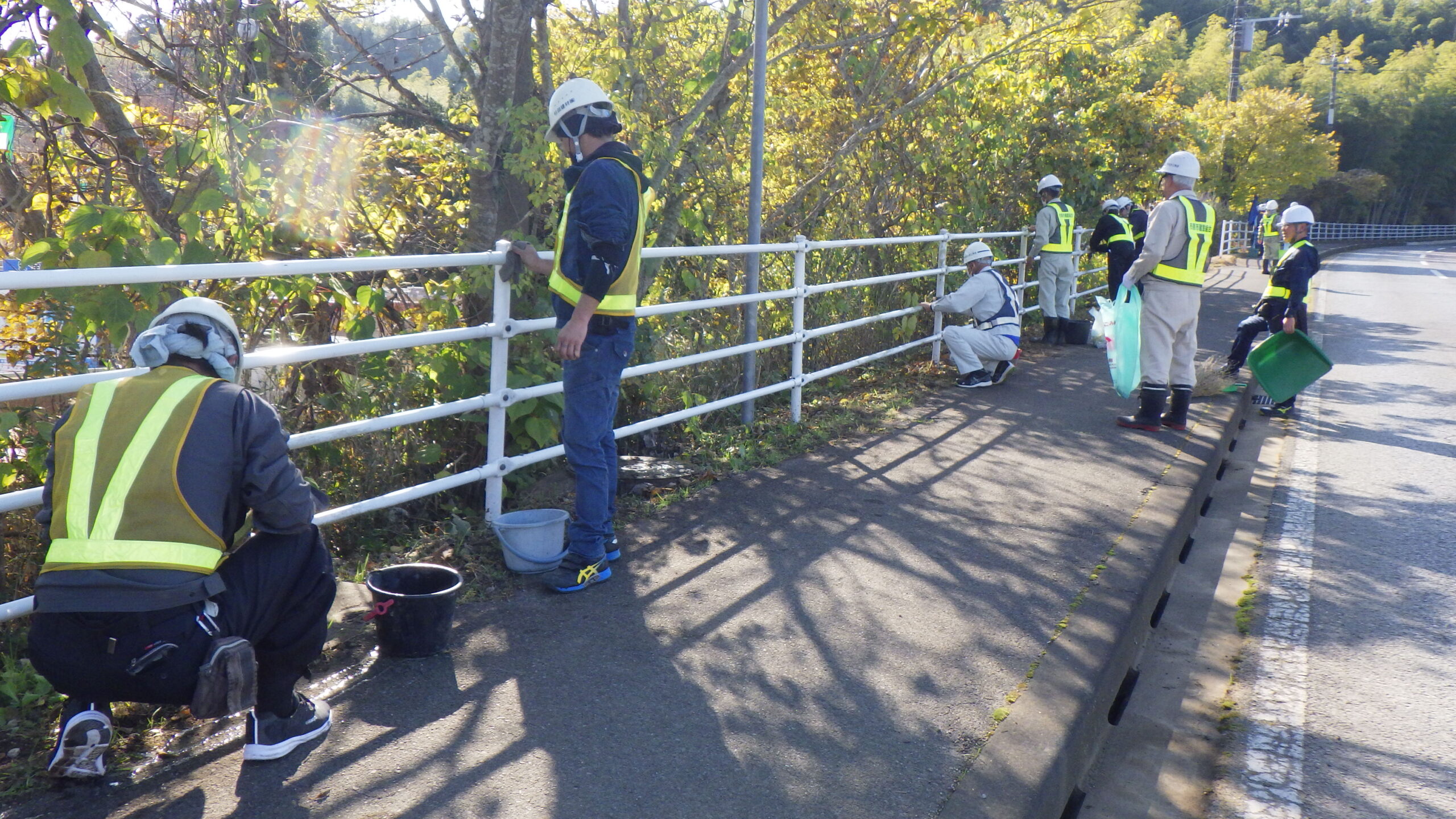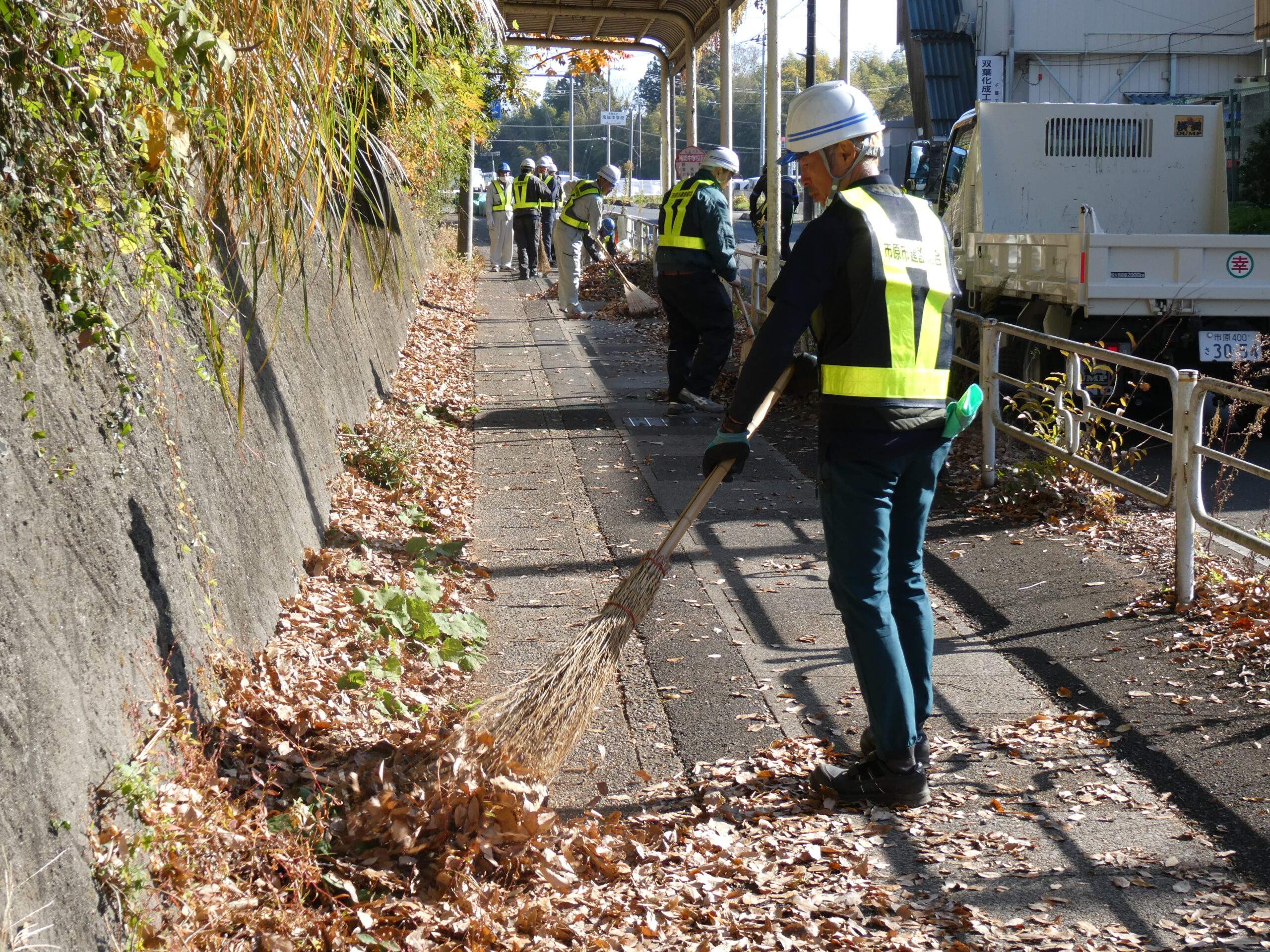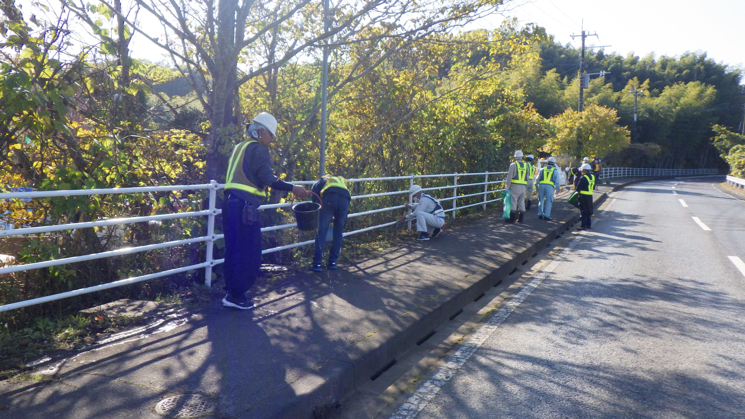 今回は市原市県道鶴舞牛久線~うぐいすライン(南総中学校付近)にて道路清掃を実施いたしました。 地域の方々や未来の担い手である学生に建設業への理解をより深めていただくため、地域社会貢献活動として落ち葉等の除草作業や道路の空き缶・ごみ拾い、ガードレール清掃を行いました。 当日は車道付近での作業となる為、周囲確認と相互の声がけを行い、安全作業にて行いました。