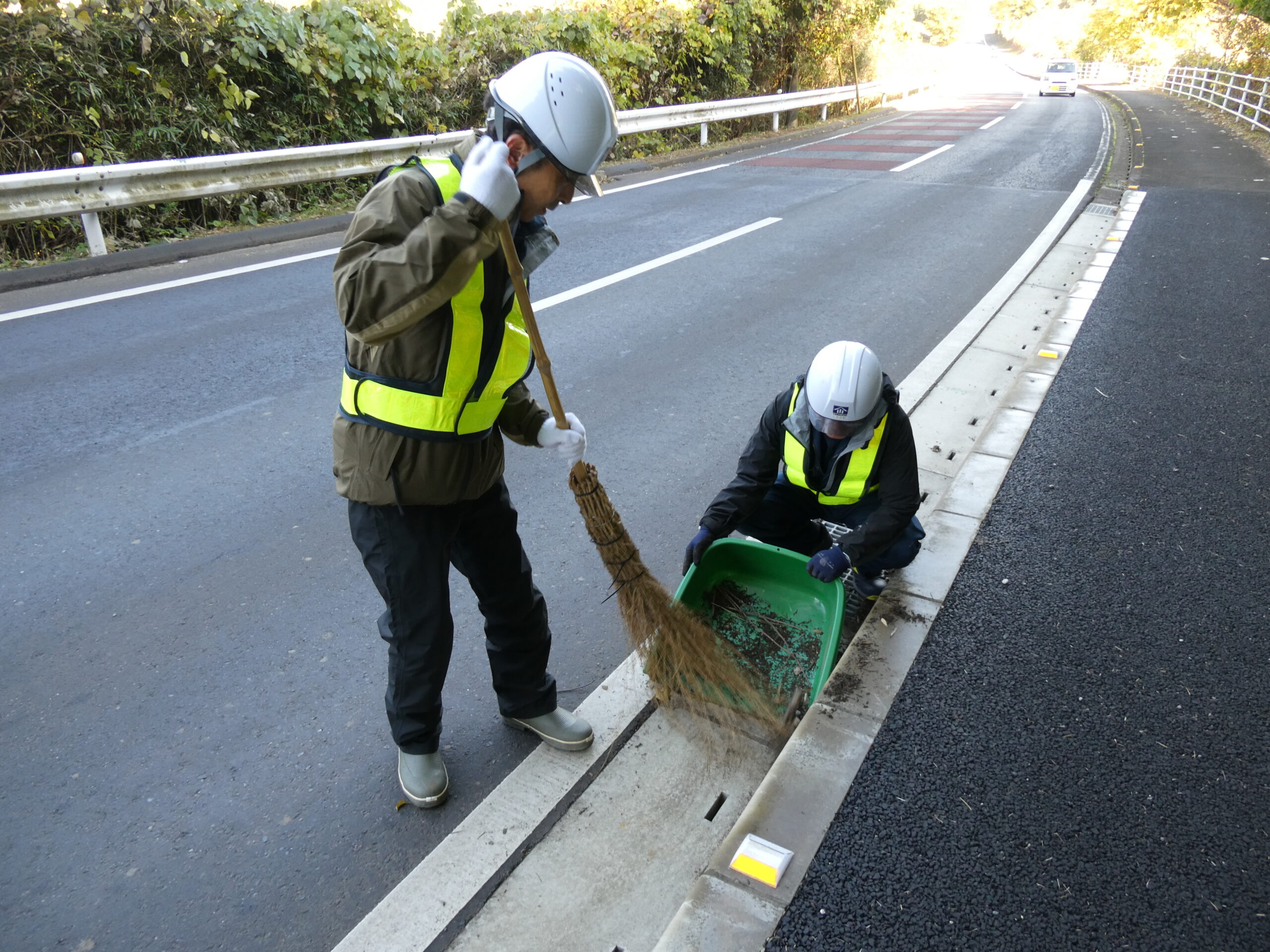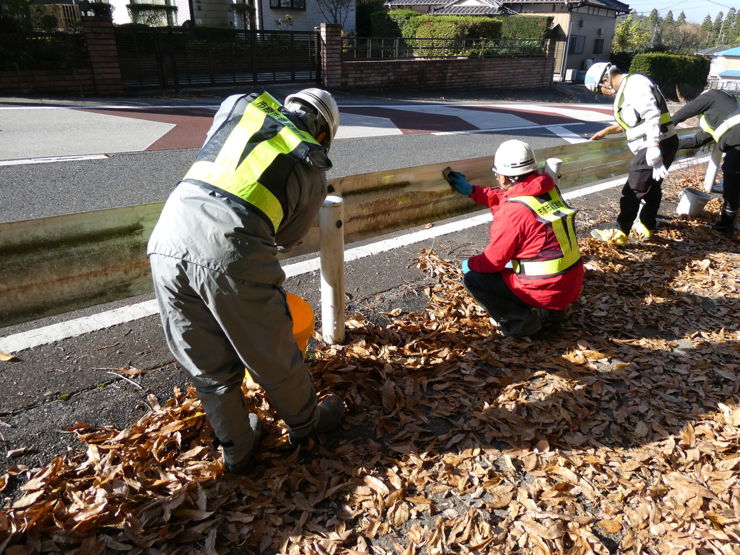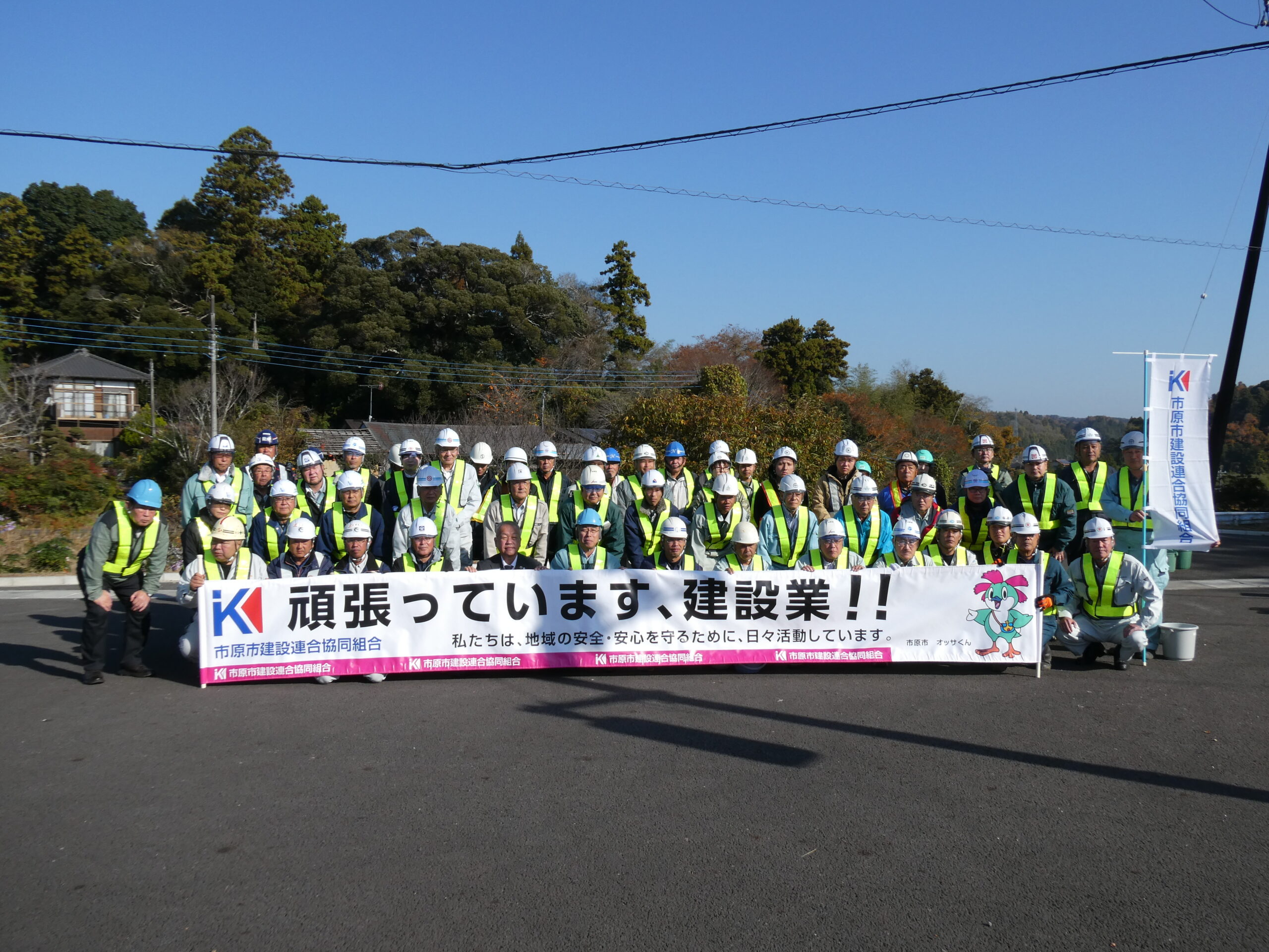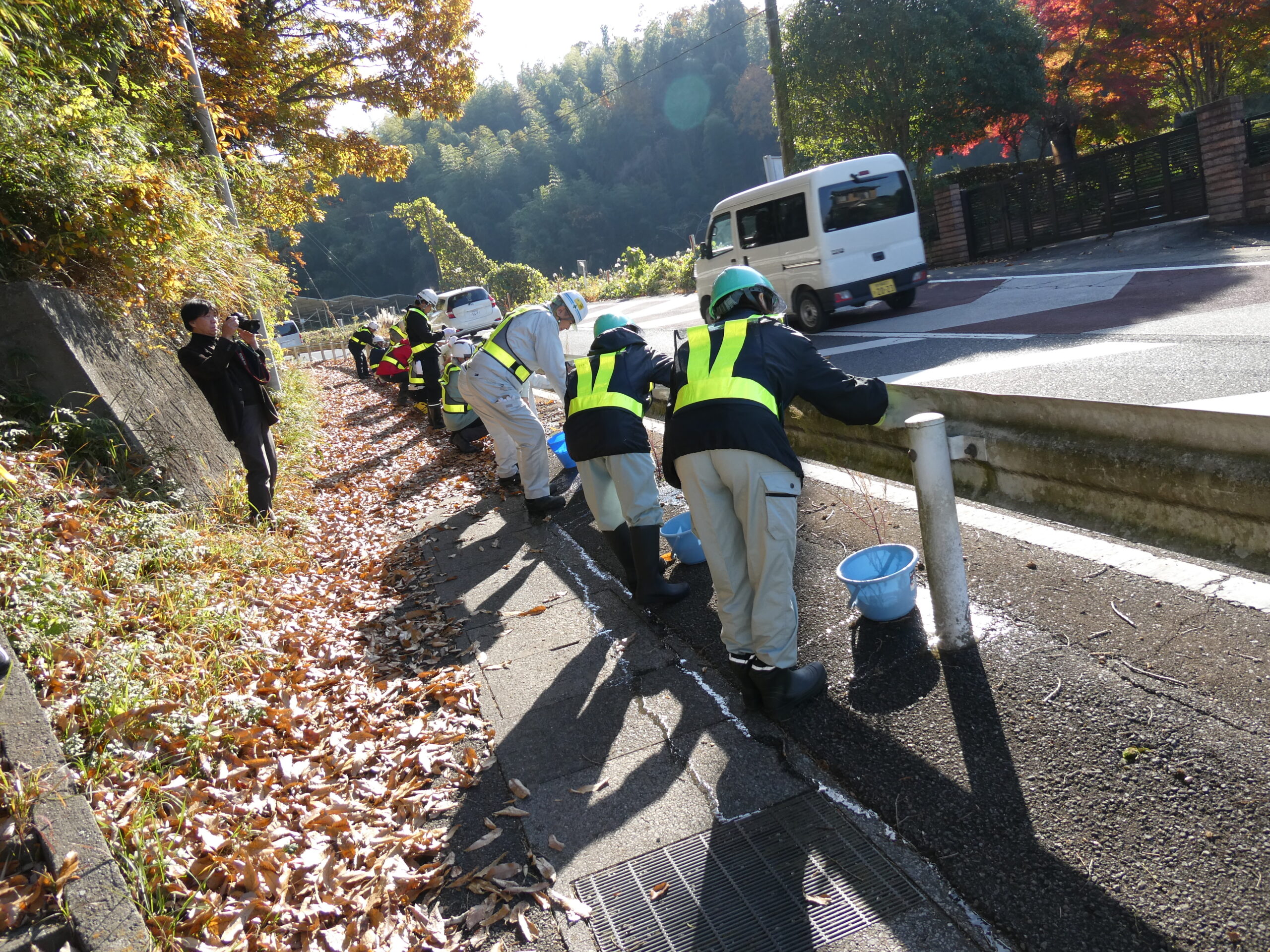 今回は市原市県道鶴舞牛久線~うぐいすライン(南総中学校付近)にて道路清掃を実施いたしました。 地域の方々や未来の担い手である学生に建設業への理解をより深めていただくため、地域社会貢献活動として落ち葉等の除草作業や道路の空き缶・ごみ拾い、ガードレール清掃を行いました。 当日は車道付近での作業となる為、周囲確認と相互の声がけを行い、安全作業にて行いました。