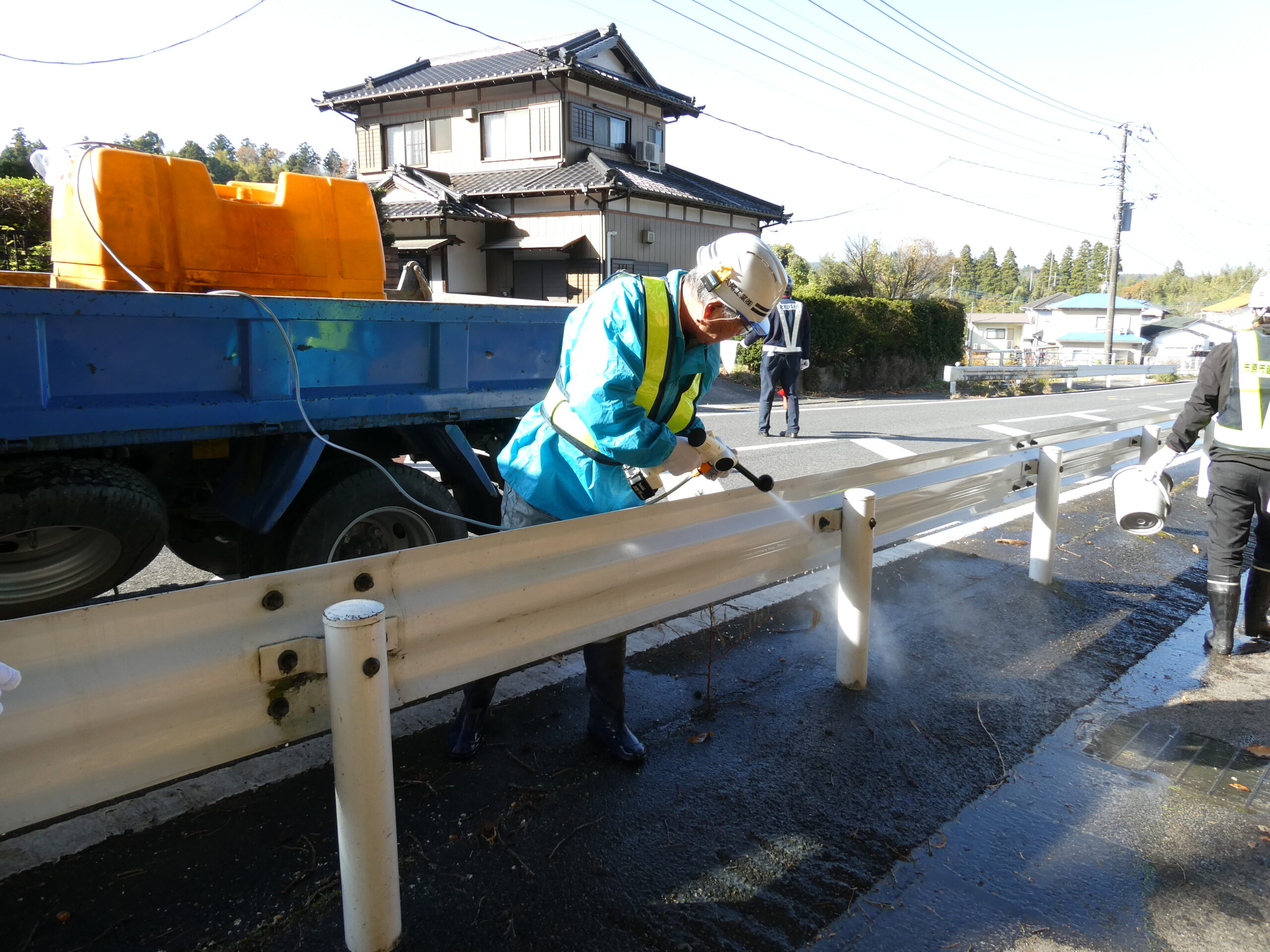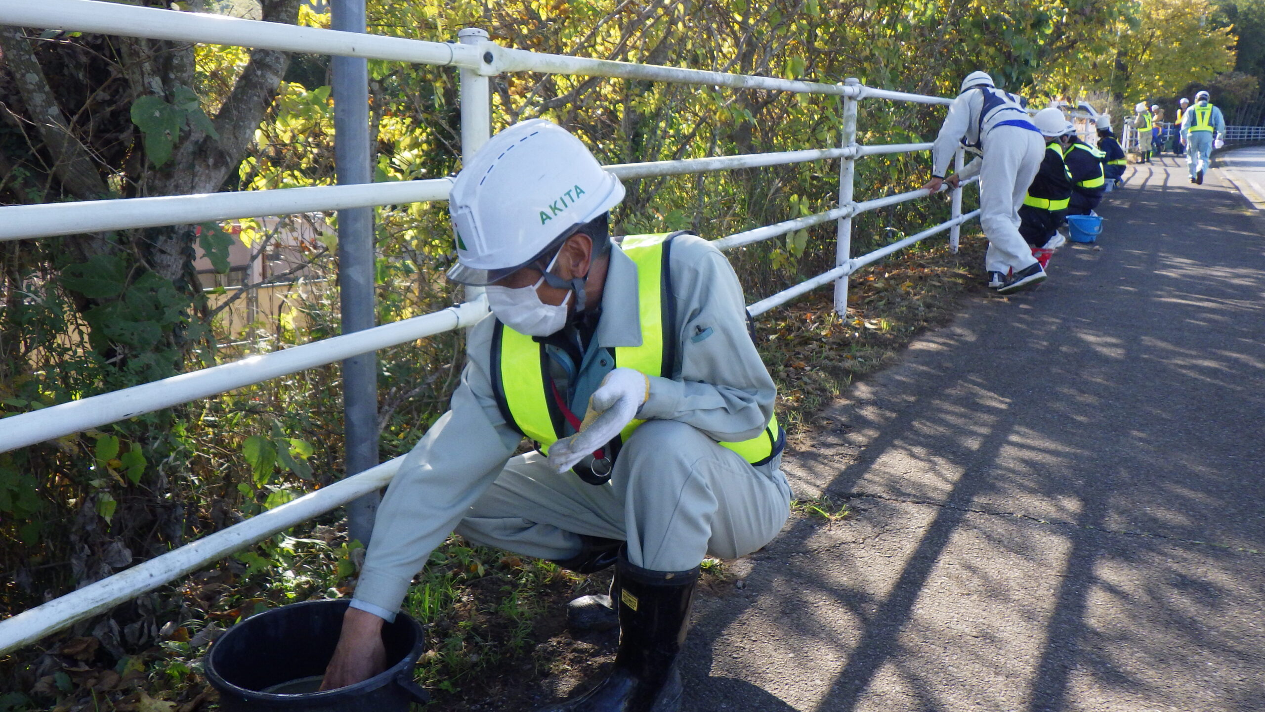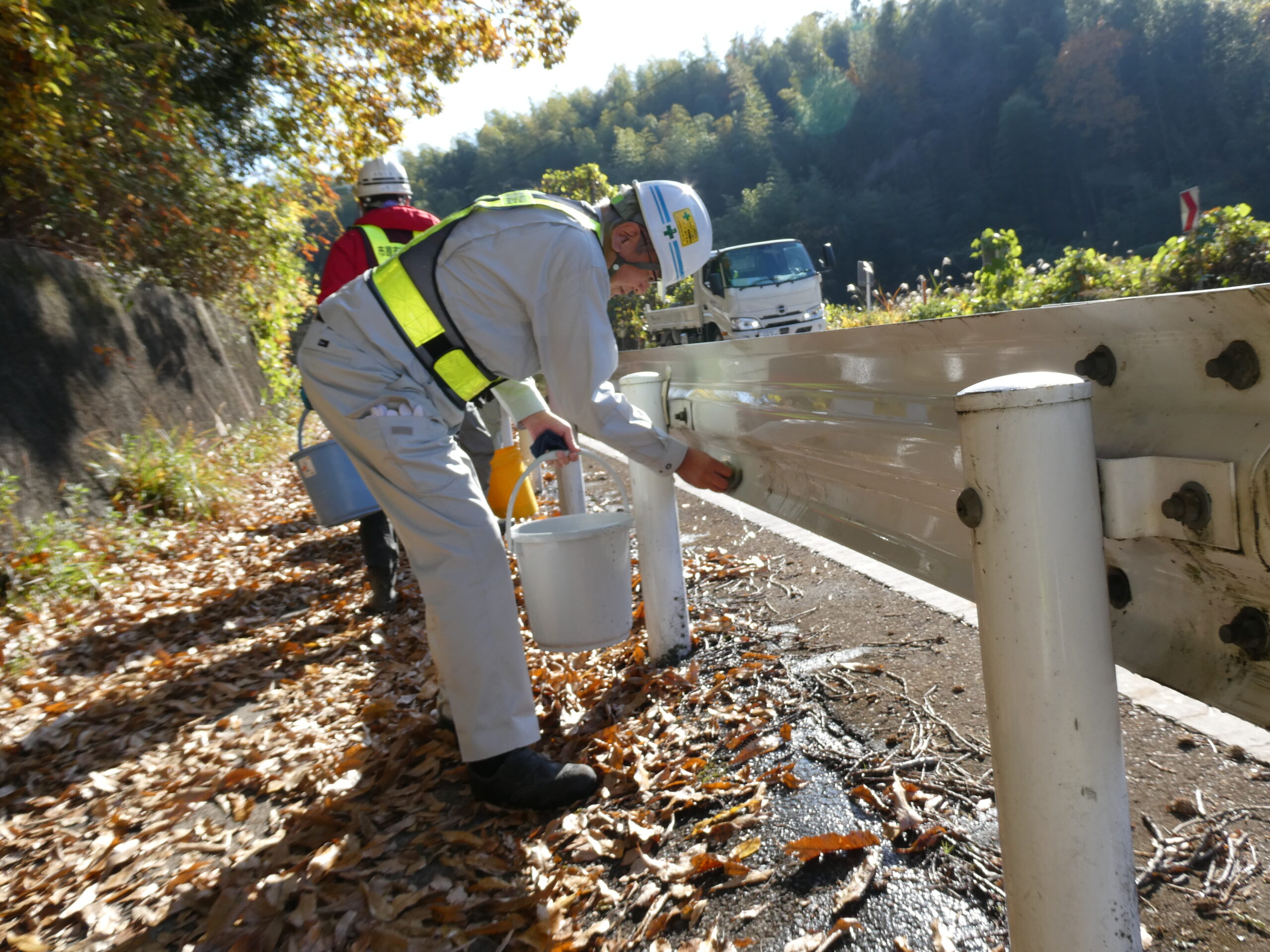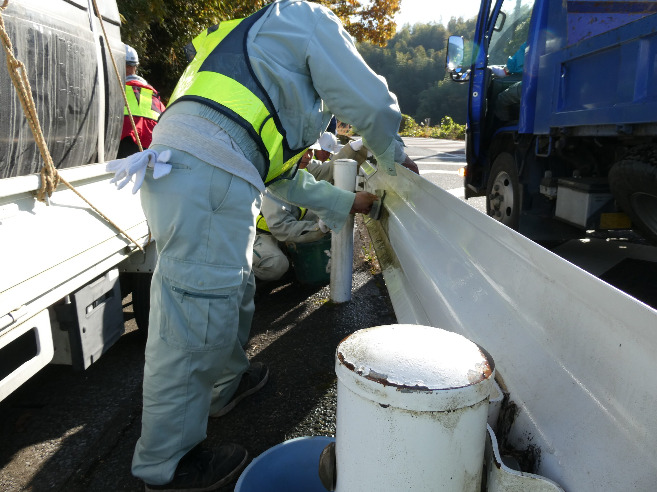 今回は市原市県道鶴舞牛久線~うぐいすライン(南総中学校付近)にて道路清掃を実施いたしました。 地域の方々や未来の担い手である学生に建設業への理解をより深めていただくため、地域社会貢献活動として落ち葉等の除草作業や道路の空き缶・ごみ拾い、ガードレール清掃を行いました。 当日は車道付近での作業となる為、周囲確認と相互の声がけを行い、安全作業にて行いました。
