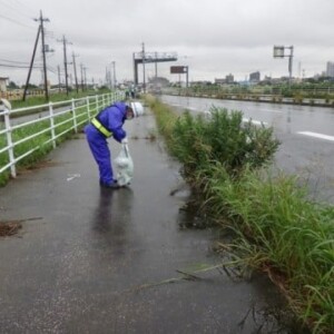 道路を通行するみな様のために一所懸命にゴミを拾い道路清掃を行いました。