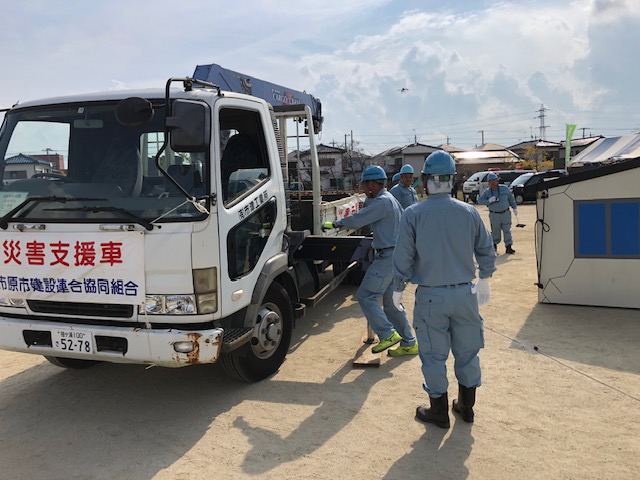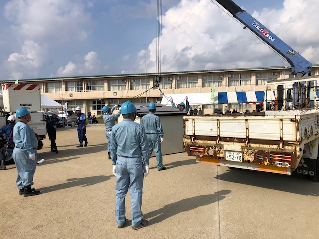 市原市地域防災計画に基づき、地震を想定して防災訓練を行い、住民、地域、関係機関・団体棟の災害応急対策の連携と、今後の防災対策の充実・強化に資するとともに、防災意識(危機意識)の高揚と減災への備えを図り、市民の生命・財産を災害から守り、安全で安心な生活を確保することを目的として防災訓練が行われました。訓練内容はマグニチュード7.3の震度6強の地震が発生した想定にて各訓練が行われました。市原市建設連合協同組合青年部としては倒壊建物をユニック車にて除去する訓練に参加しました。